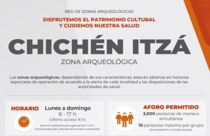 El horario de visita a Chichén Itzá es de 8:00 a 16:30 horas de lunes a domingo.